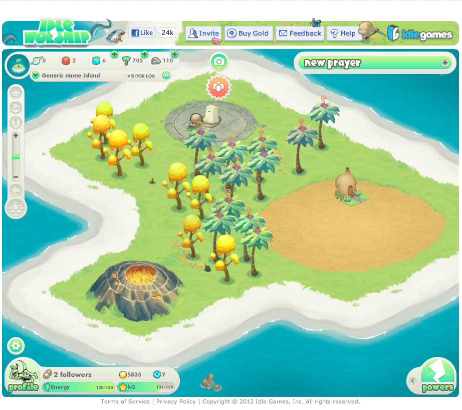 Idle Worship® is a god game, where you try to build the biggest religion of friends, strangers, and the rather dim indigenous population called Mudlings.